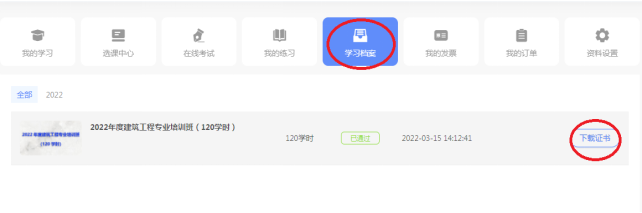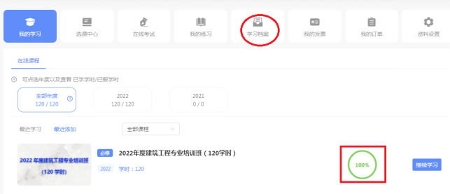 五、继续教育学习证明下载。当你的学习达到规定课时后进入“学习档案”