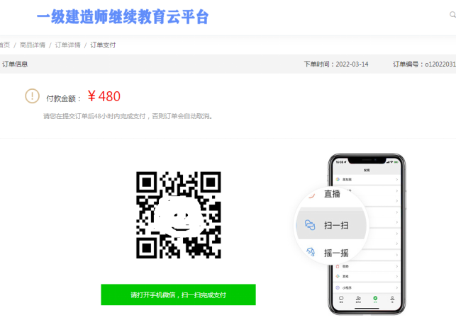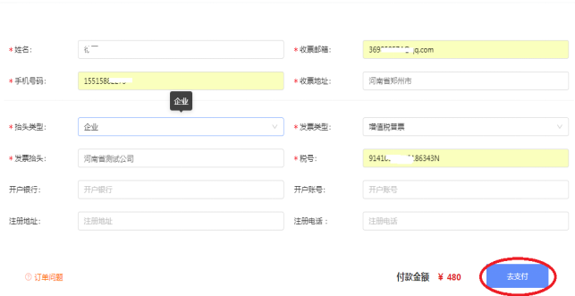 (3)各项信息填写完毕后点击“去支付”,用“微信扫码”进行支付。
