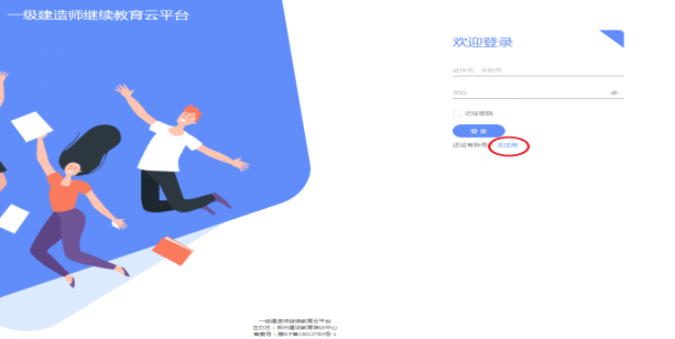 点击“网络学习系统入口”或“一级建造师继续教育云平台”飘窗,进入一级建造师继续教育云平台(如下图)进行注册。