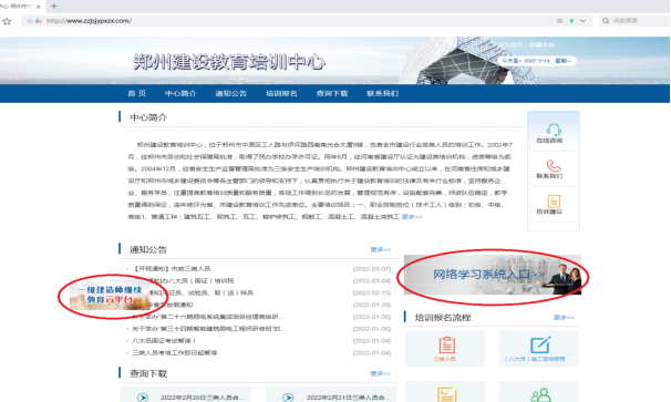 一、登录:郑州建设教育培训中心官网http://www.zzjsjypxzx.com/(如下图)