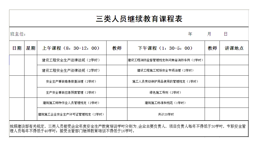 三类人员继续教育课程表